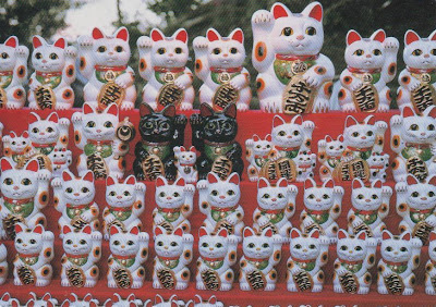 More of Japan - well of course :) Maneki-Neko literally means 'Beckoning Cat' and is a recognisable Japanese lucky charm made of ceramics. It is usually displayed at the entrance to different businesses for good luck. The figurine usually depicts a calico Japanese Bobtail, a breed of domestic cat whose tail is unusual and resembles the one of a rabbit..! Thank you Fumie for great swaps :)