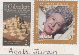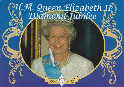 The Diamond Jubilee of Elizabeth II, celebrated in 2012, marks the 60th anniversary of the Queen's accession to the throne. Queen Victoria is the only other monarch to have celebrated such jubilee (in 1897). Go the Queens! To have this postcard with a matching stamp from Gibraltar gives me much joy, thank you Rachel :))