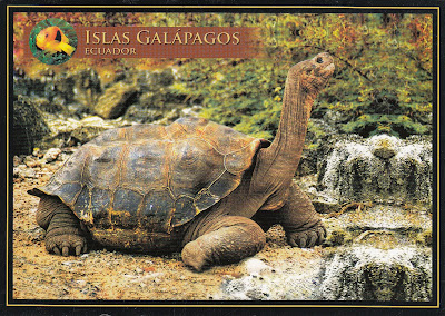 The Pinta Island tortoise (Chelonoidis nigra abingdonii) was a subspecies of Galápagos tortoise native to Ecuador's Pinta Island. The fellow on the postcard was called Lonesome George and was the last known individual of the subspecies - he was born before 1912 and died in June 2012. Sadly, over the decades all attempts at mating Lonesome George had been unsuccessful...Its a sad story isnt it? :((