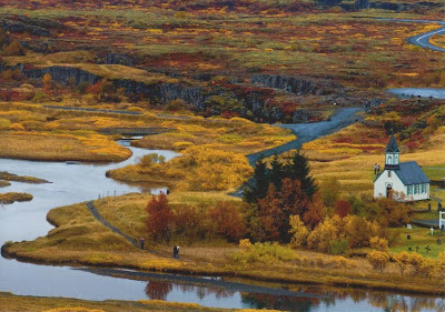 Thingvellir National Park is where the Althing, an open-air assembly representing the whole of Iceland, was established in 930 and continued to meet until 1798. Over two weeks a year this assembly of free men set laws and settled disputes. Also, many geological features here display the consenquencef of Iceland being situated at the meeting point of two tectonic plates - volcanoes, fissures, faults and the sunken valley.