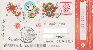 Just a short intro for the collection to come :) I was sooo happy when i realised that the Croatian Mail was to issue Year Of the Dragon stamps!! In the previous years i've seen postcrossers doing swaps of cards/stamps for years of the rabbit and tiger, and was so jealous of them cos i had nothing to offer...This year i have received many gorgeous cards and stamps showing dragons, and i can only but hope that this is not an isolated 'incident' - though somehow i cannot imagine there being snake stamps next year...here's hoping, as i love snakes (as images! not sure i'd like to pet one lol) and it is after all my chinese zodiac sign ;)