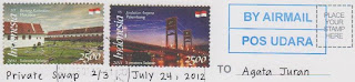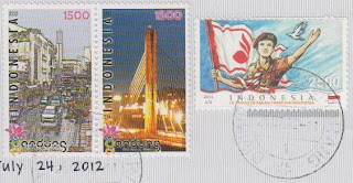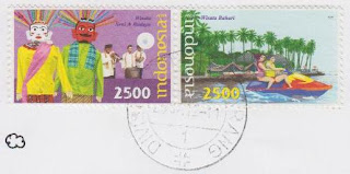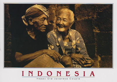 At first I was puzzled to have received an envelope fron Indonesia, cos I was expecting postcards from Shinta, and she knows I like them written & stamped...and when I opened it, I couldn't but gasp in amazement, cos she sent me all three cards with stamps and cancellations! To top it all, she added a folding card that I had in my favs, and the gorgeous portrait of the happy old Javanese couple which never arrived for a tag. Shinta is such a great postcrosser, and its a shame that her postcards get lost on the way cos she puts so much love into writing them...I guess her and Ana would have to compete for the neatest handwriting :P